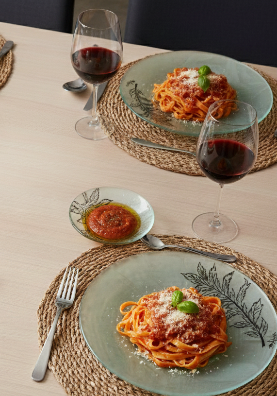 Diseño:piezas fabricadas en vitrofusión con una forma redonda clásica, priorizando la elegancia discreta y los bordes limpios.Perfecta para el uso diario, con salsas, aderezos, cremas o dulces.